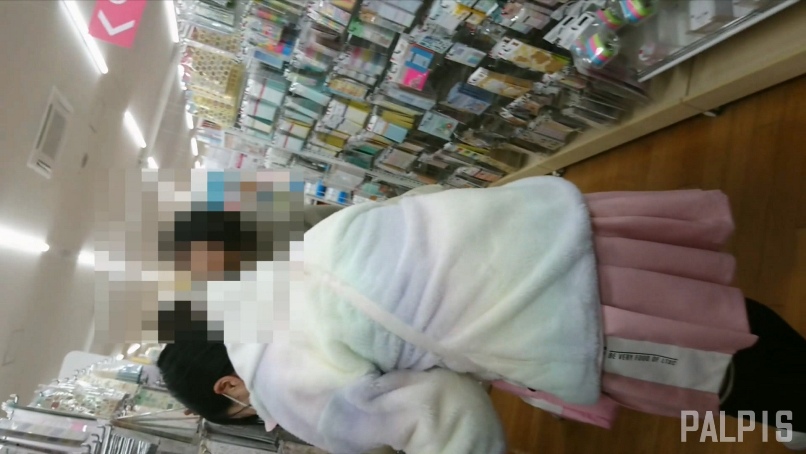 店内の雑貨コーナーで文房具を見ているようです。お連れ様とは良い雰囲気のようで、マスク越しでも笑いながら話しかけているように見えました。