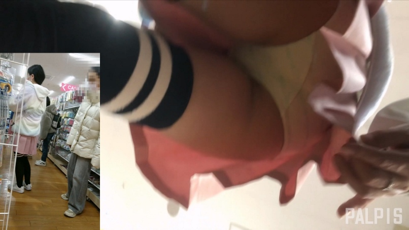 ピンク色のスカートの中には裏地がなく、生パンがあっさりとチラ見え。